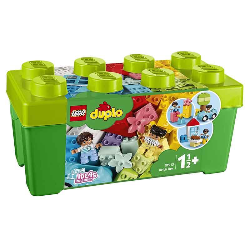 ¡Una caja repleta de divertidas piezas y ladrillos LEGO DUPLO! Incluye diferentes ladrillos de colores, un coche con ruedas que se mueven, ventanas, flores, bloques de números 1-2-3, 2 figuras DUPLO de un niño y una niña, además de un bonito perrito Los ladrillos para bebés LEGO DUPLO utilizan ladrillos grandes diseñados para las manos pequeñas