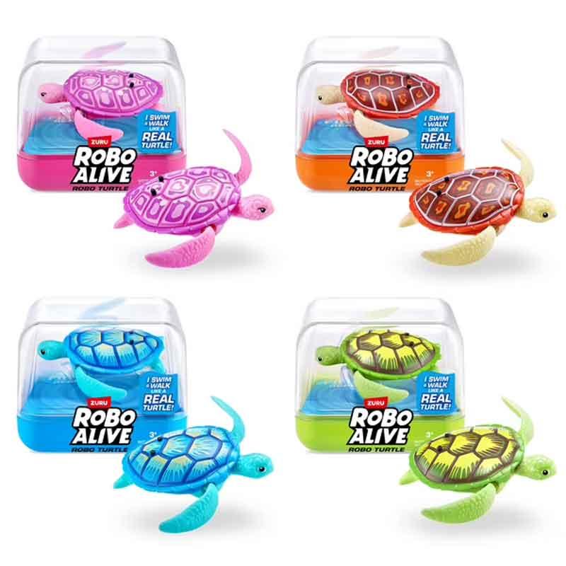 Hay 4 tortugas robóticas de diferentes colores para coleccionar y completar tu acuario robótico.