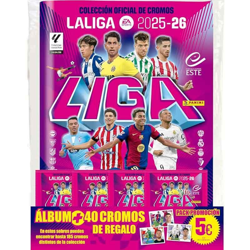 Empieza tu colección de LaLiga EA Sports con el Starter Pack Liga Este 2025-2026 de Panini. Incluye el álbum oficial y 5 sobres con 40 cromos en total, para que empieces con buen pie.