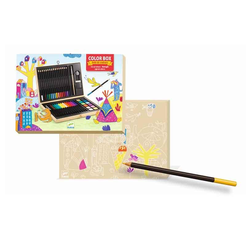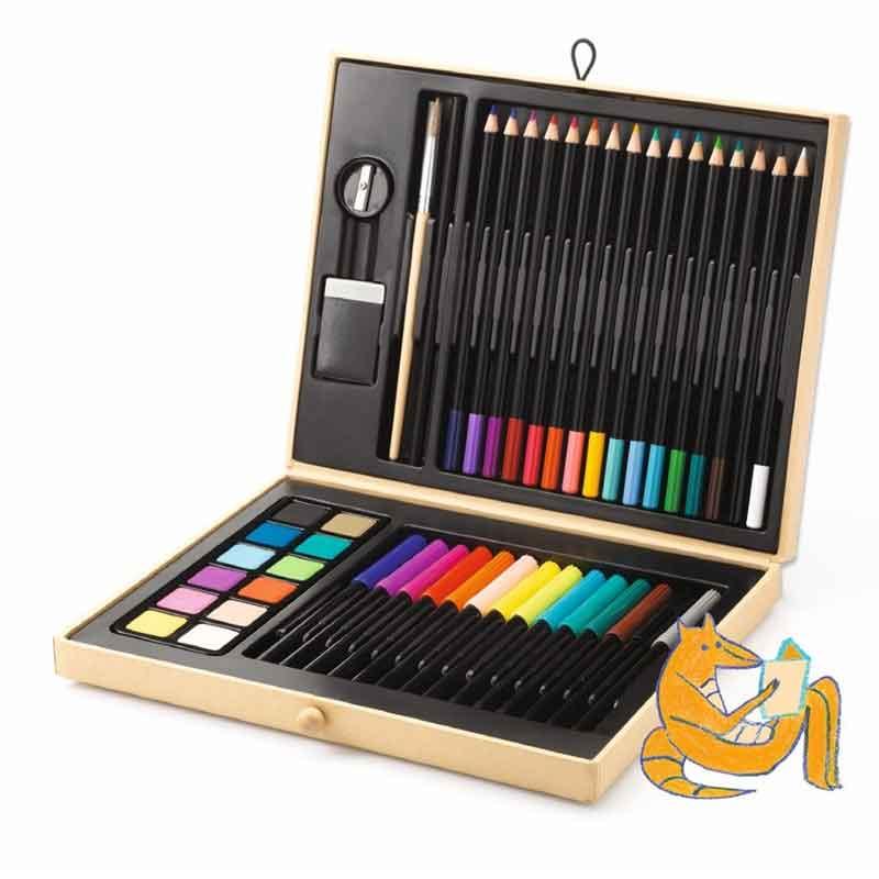 Un compacto maletín para llevar a todas partes con todo lo necesario para colorear, pintar y dibujar.