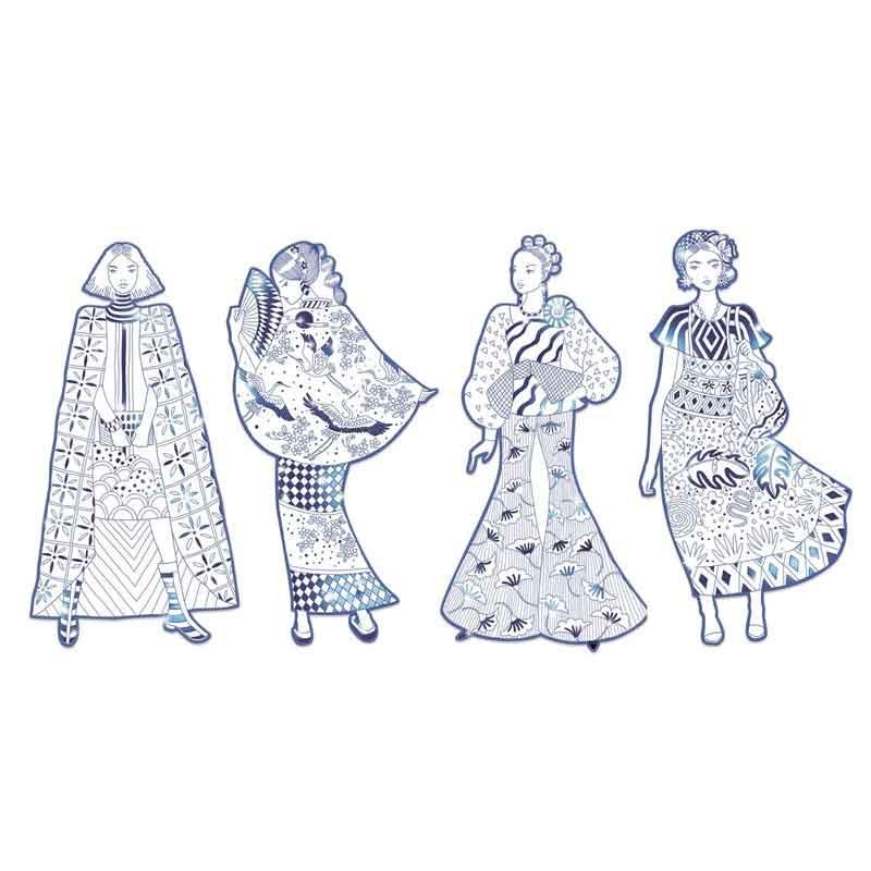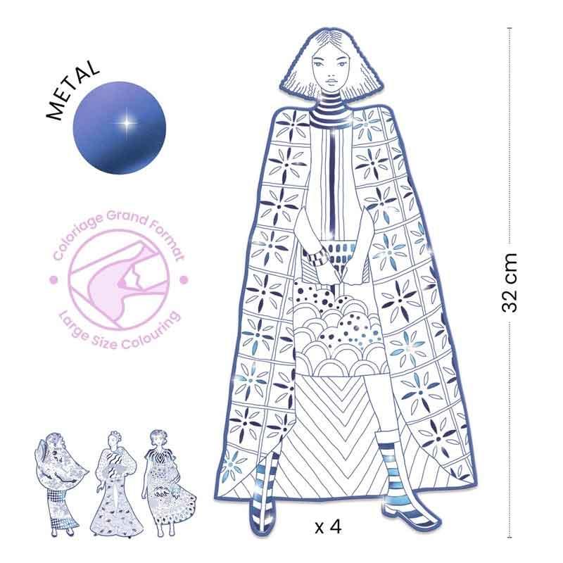 Cada ficha es una figura de una mujer de 32 cm de alto con diferentes diseños de moda para colorear.