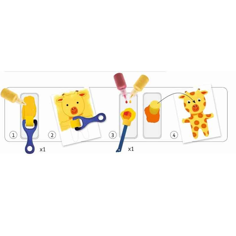 Pintar con esponjas Las aventuras de los peluches de Djeco es una divertida manualidad para los más pequeños, pinta con esponjas y pintura bonitos animales.!