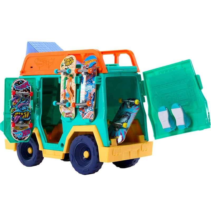 El conjunto Furgoneta de skate de Hot Wheels Skate está repleto de áreas para patinar, accesorios móviles y una tabla “fingerboard” exclusiva diseñada en colaboración con Tony Hawk.