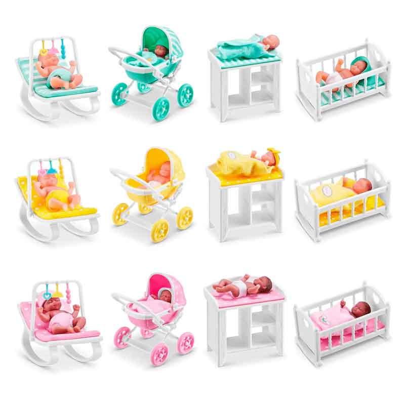La serie incluye 12 diferentes bebés y sets de juego como cuna, carrito y cambiador, en varios colores para coleccionar.