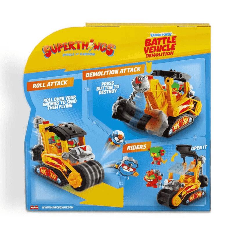 En los nuevos episodios de la serie de TV “Superthings Kazoom Power”, el Profesor K crea un súper vehículo de batalla de demolición a partir de un fragmento de energía Kazoom, ¡convirtiéndose así los Superthings villanos en una gran amenaza!