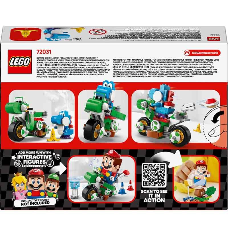 Inspirado en la serie de Nintendo, incluye un modelo construible de la Moto Yoshi y, por primera vez en un set LEGO Super Mario, una figura de Yoshi Azul Claro.