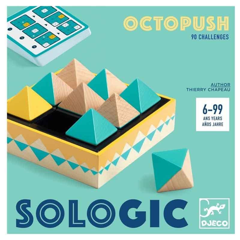 El juego incluye 9 octaedros de madera certificada FSC, 15 cartas con 90 desafíos y cuadernillo con las reglas .