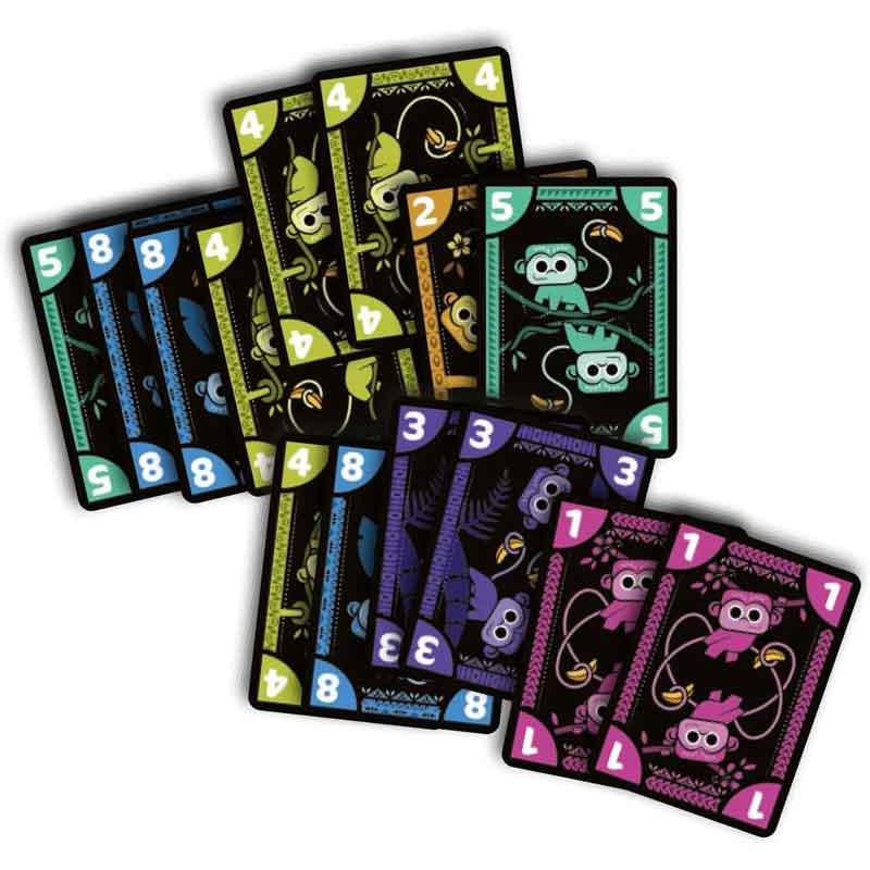 Entre las cartas que incorpora el juego, hay algunas que son especiales. Se trata de cartas con valor doble, que pueden asumir uno de los dos valores indicados, a elección de quien las juega. En cada turno los jugadores deberán pensar muy bien si quieren o no jugar cartas para tratar de deshacerse de ellas lo más rápido posible. En resumen, Jungo ofrece horas de entretenimiento a cambio de muy pocas reglas.