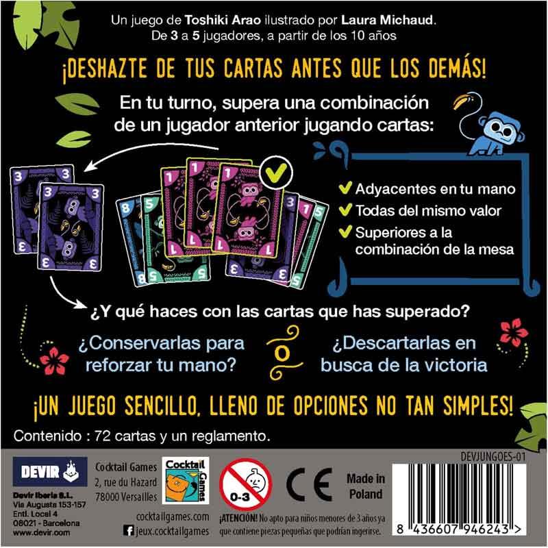 Fácil de aprender y divertido de jugar, Jungo es el compañero perfecto para cualquier viaje o el complemento ideal de una sobremesa.