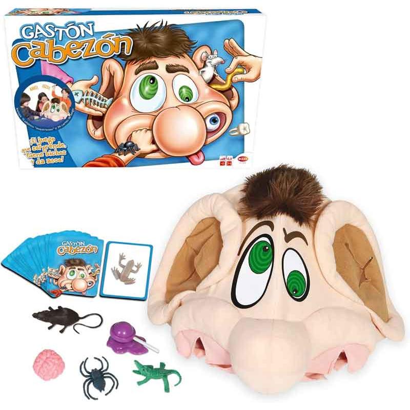 Gastón Cabezón es un juego familiar lleno de sorpresas asquerosamente divertidas. Mete las manos por sus orejas o nariz para encontrar el objeto de tu carta, pero no siempre será fácil… ¡ni agradable!