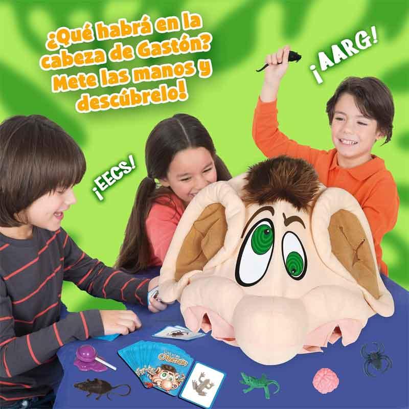 Este juego divertido y asqueroso, hará que te partas de risa. Cada jugador cogerá una carta con un dibujo del objeto que tiene que buscar. Una vez que todos tengan la carta, meterán al mismo tiempo sus manos dentro de la cabeza de Gastón para buscarlo. ¡Quién sabe lo que vas a encontrar! ¿una rata? ¿un tornillo? Con risas aseguradas tanto para adultos como para niños. Si consigues sacar el objeto correcto, ganas.