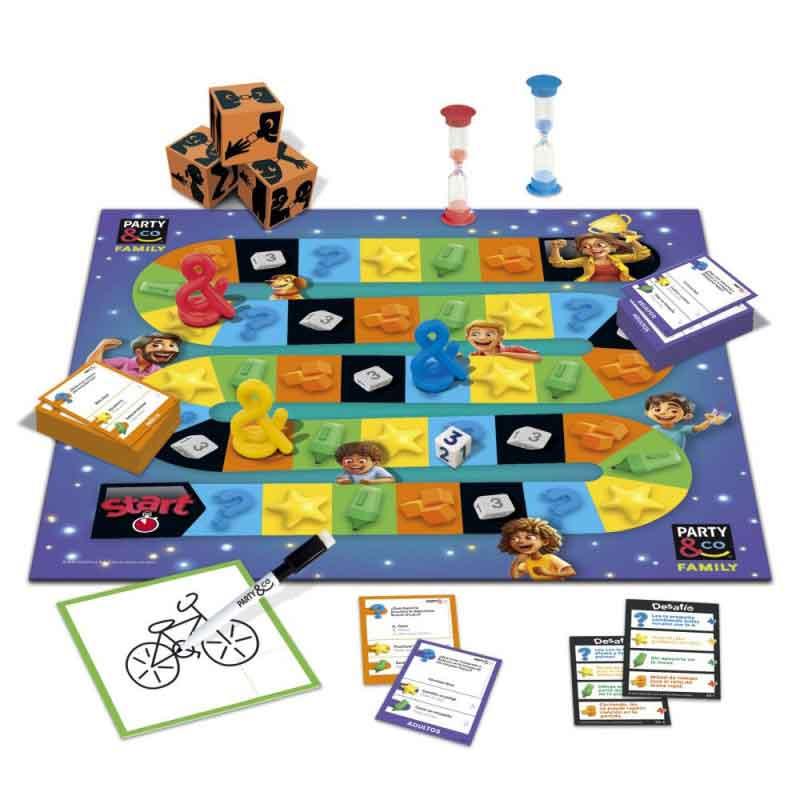 Esta edición familiar mantiene la esencia del clásico Party & Co. pero está diseñada para que tanto niñas y niños como personas adultas puedan jugar juntos sin perder la emoción ni la igualdad de condiciones.