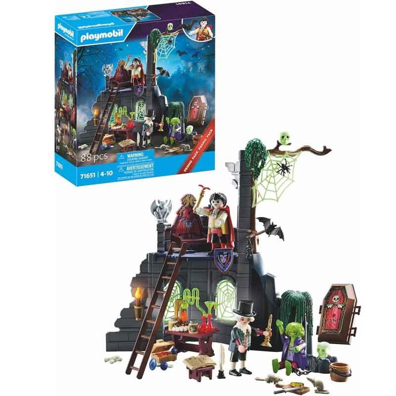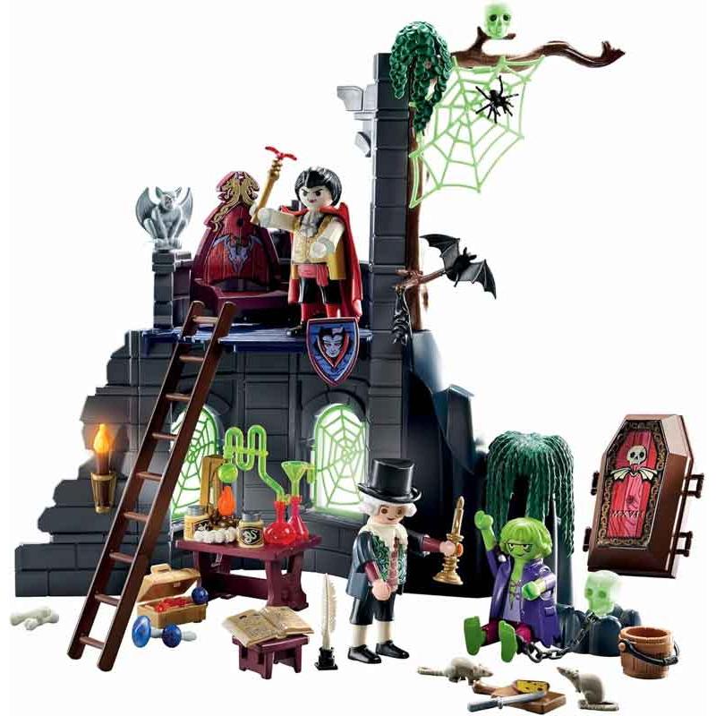 Este set incluye las ruinas de un castillo, 3 figuras PLAYMOBIL, varias arañas, un ataúd y muchos otros extras para emocionantes juegos de rol de niños y niñas