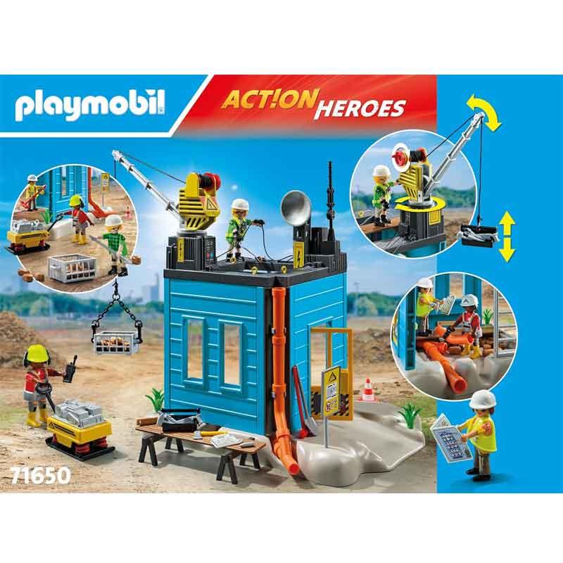 Contenido: Figuras: 1 mujer, 2 hombres; Accesorios: 1 accesorio para guantes, 1 arnés, 3 cascos de obra, 1 reloj de pulsera, 1 compactador, 1 caja de herramientas, 1 mesa de obra, 1 cabrestante, 3 cables de silicona.