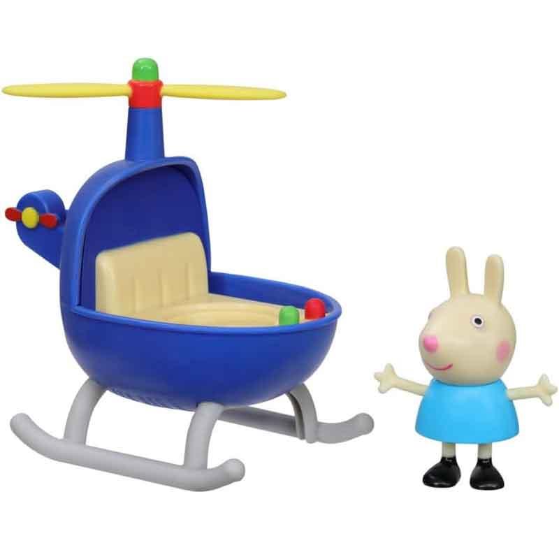Peppa pig es un mundo de aventuras y en el, niños y niñas lograrán divertirse imaginando que dan un paseo en helicóptero con Rebeca Liebre .
