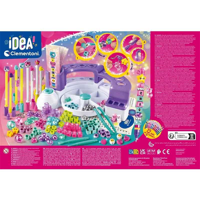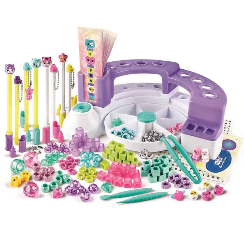 Con su mesita de trabajo, estación creativa y herramientas incluidas, podrás decorar bolígrafos con letras, cuentas, pegatinas y simpáticos personajes.