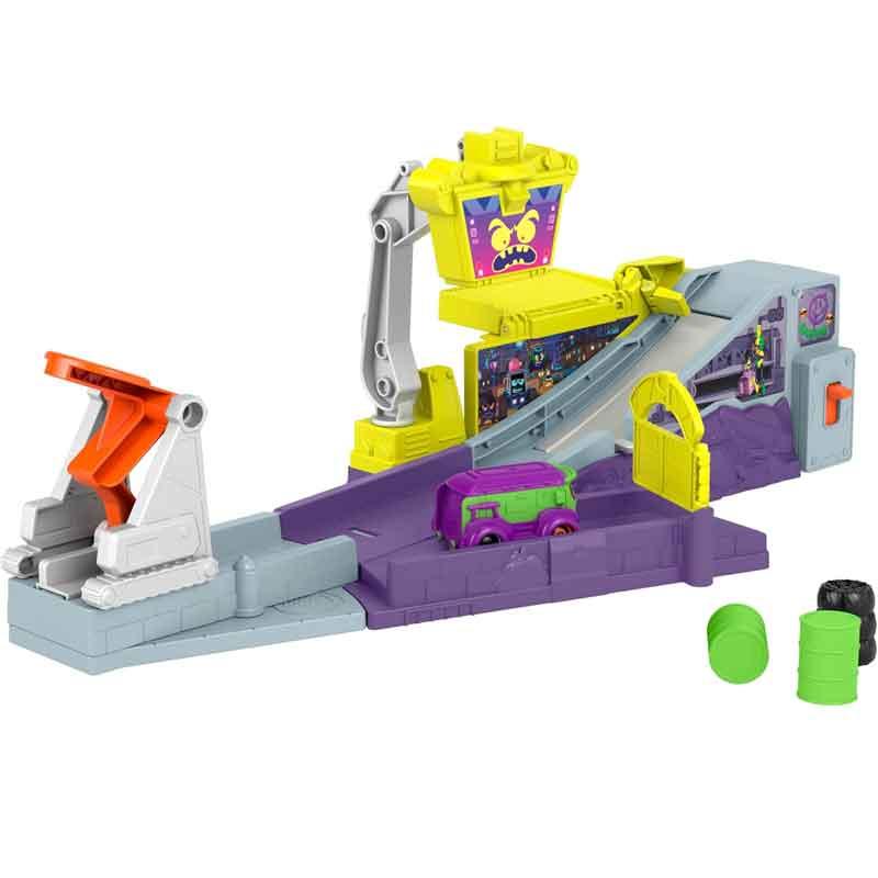 Incluye a Prank, la furgoneta del Joker, a escala 1:55, y tres accesorios, además de una plataforma plegable para disfrutar de un sinfín de choques.