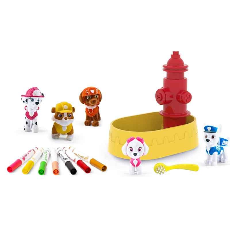 Los niños podrán decorar a los cachorros con los rotuladores incluidos y luego darles un baño con agua y un cepillo para que estén listos para una nueva misión emocionante