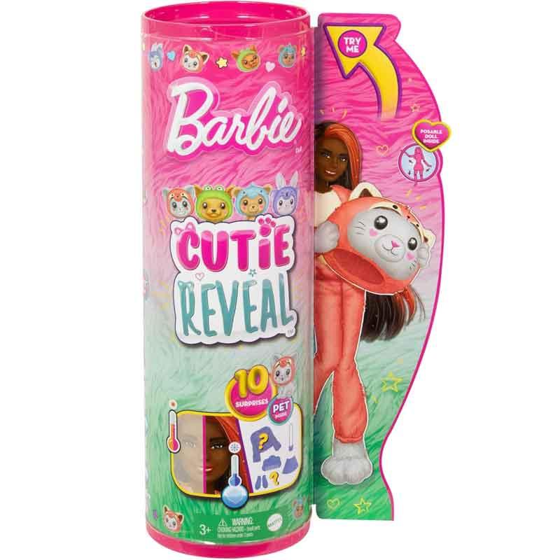 Con 10 sorpresas en un paquete, las muñecas de la colección Barbie Cutie Reveal con temática de disfraces ofrecen una experiencia de lo más adorable al abrir la caja con sus disfraces de peluche, su ropa y la función de cambio de color.