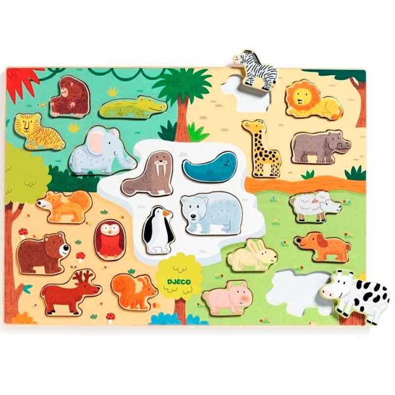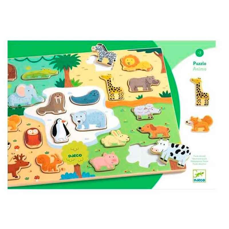 Descubre el Puzzlo Animo de Djeco , un magnífico rompecabezas de madera de 22 piezas para niños a partir de 2 años.