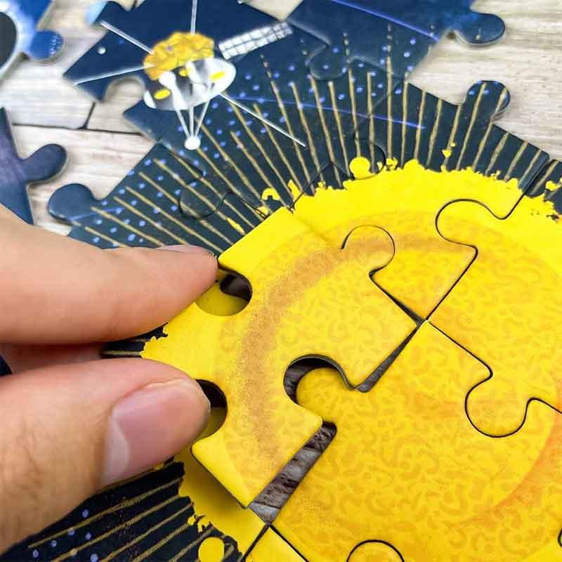 Contiene un puzle con 200 piezas de cartón rígido, un póster decorativo y un cuaderno explicativo acerca de los misterios del espacio