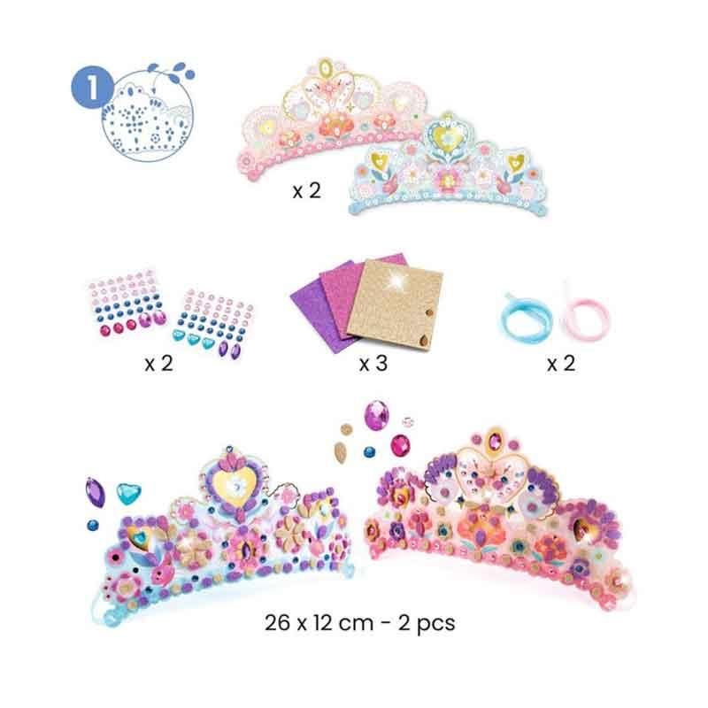 - 2 tiaras para decorar con gemas autoadhesivas y pegatinas de espuma con brillantina.