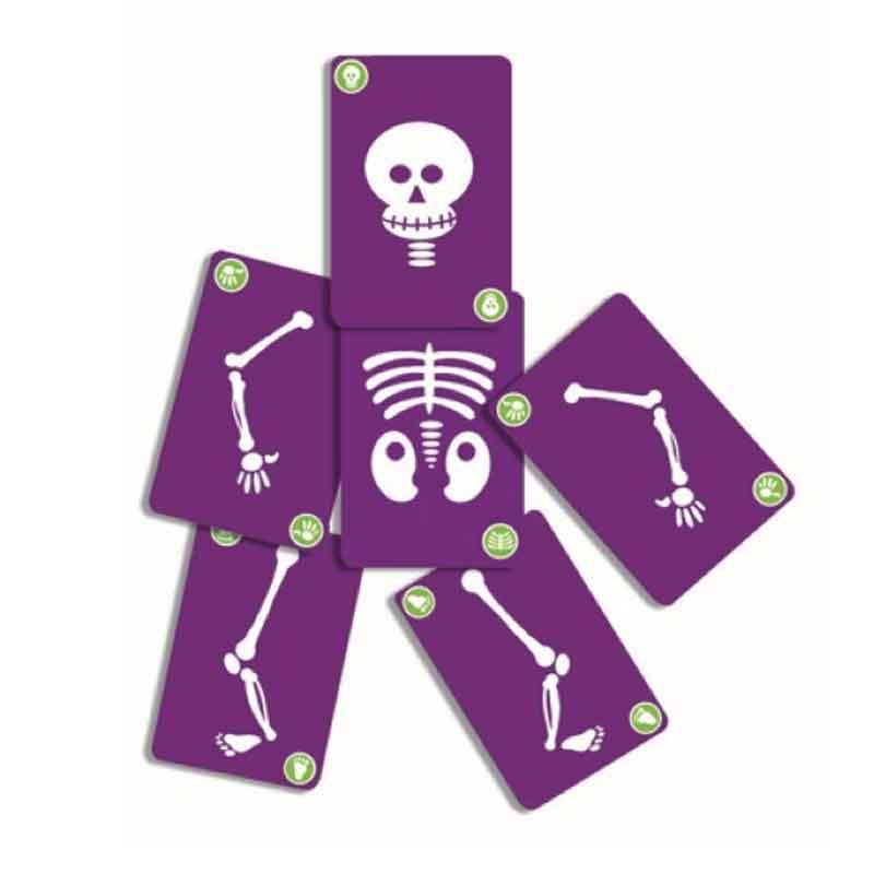 Es un juego de cartas con un divertido desafío: Encontrar las 6 partes de un esqueleto.