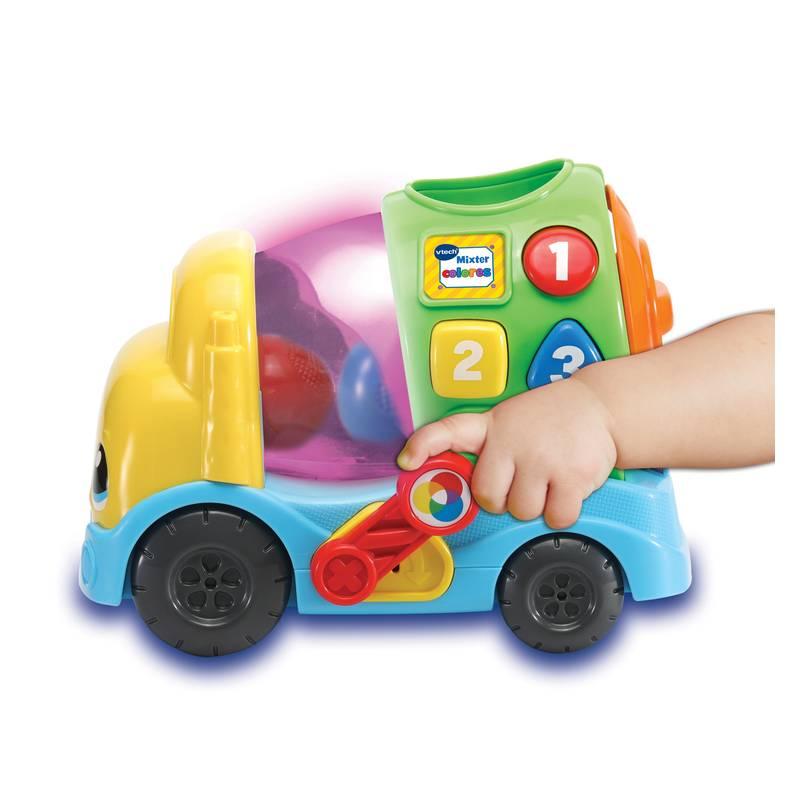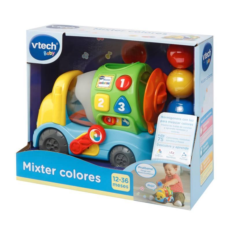 Mixter Colores es una hormigonera con 3 modos de juego, para aprender colores, formas, números y con más de 75 canciones, melodías, sonidos y frases. Incluye 3 bolas de colores.